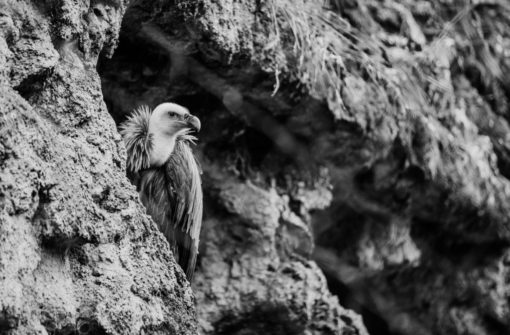 https://www.pexels.com/photo/grayscale-photo-of-vulture-perched-on-rock-formation-2265252/