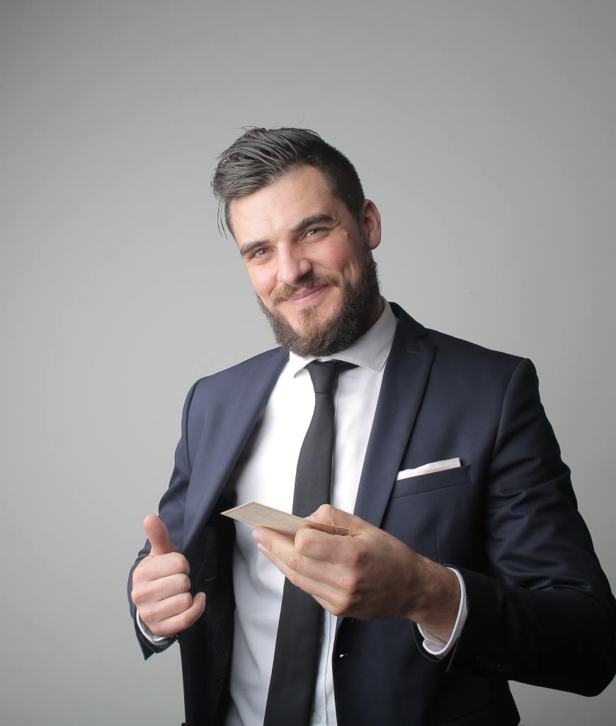 Photo by Andrea Piacquadio: https://www.pexels.com/photo/man-in-black-suit-holding-a-calling-card-3785104/